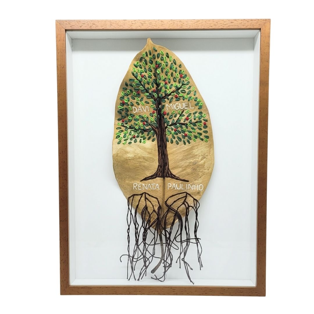 Folha de árvore natural bordada à mão com Árvore da Família.