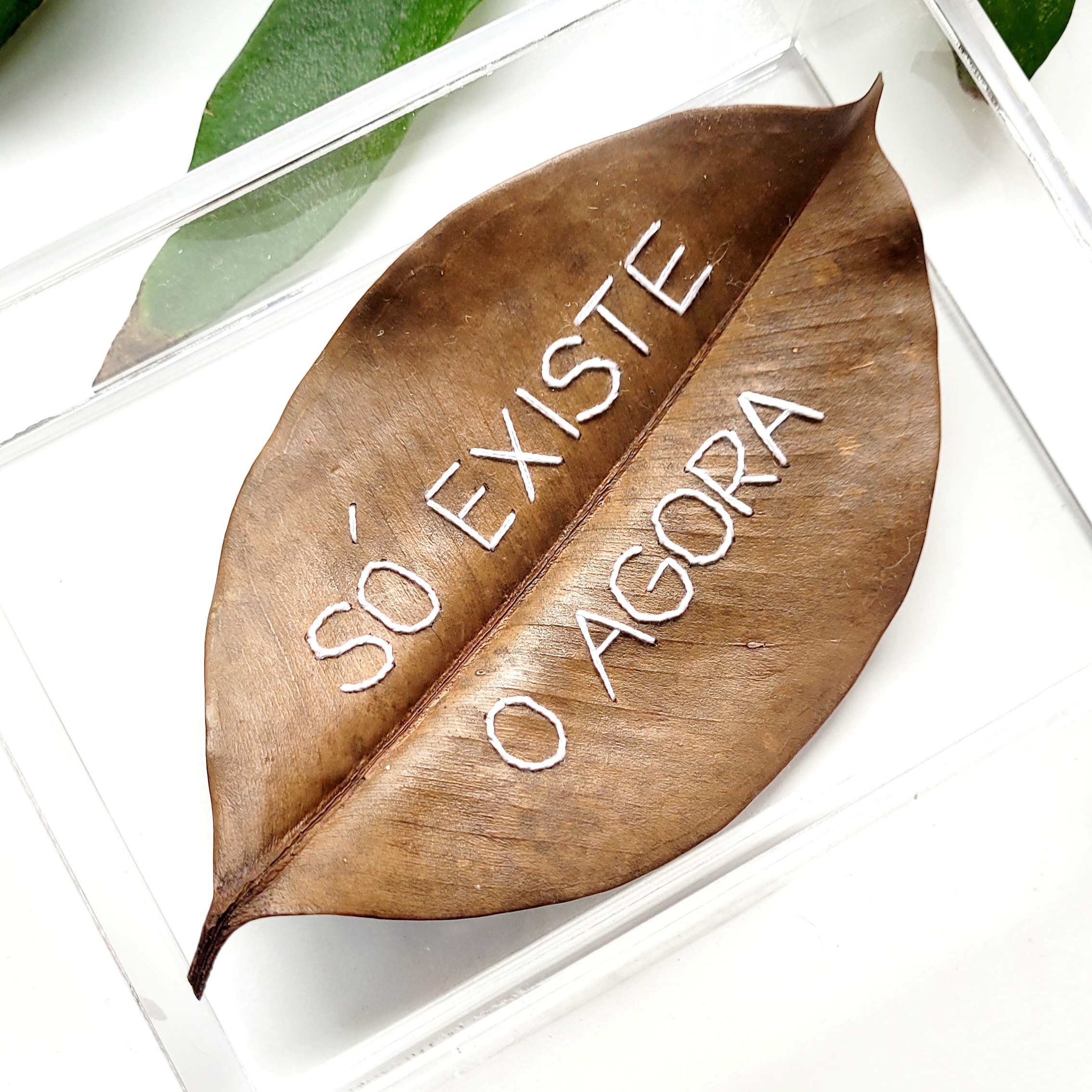 Folha de árvore natural bordada à mão. Acompanha caixa acrílica na medida de 10 x 15 x 4cm.